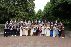 Drohnenaufnahme von Schülern die den Schriftzug JHG bilden